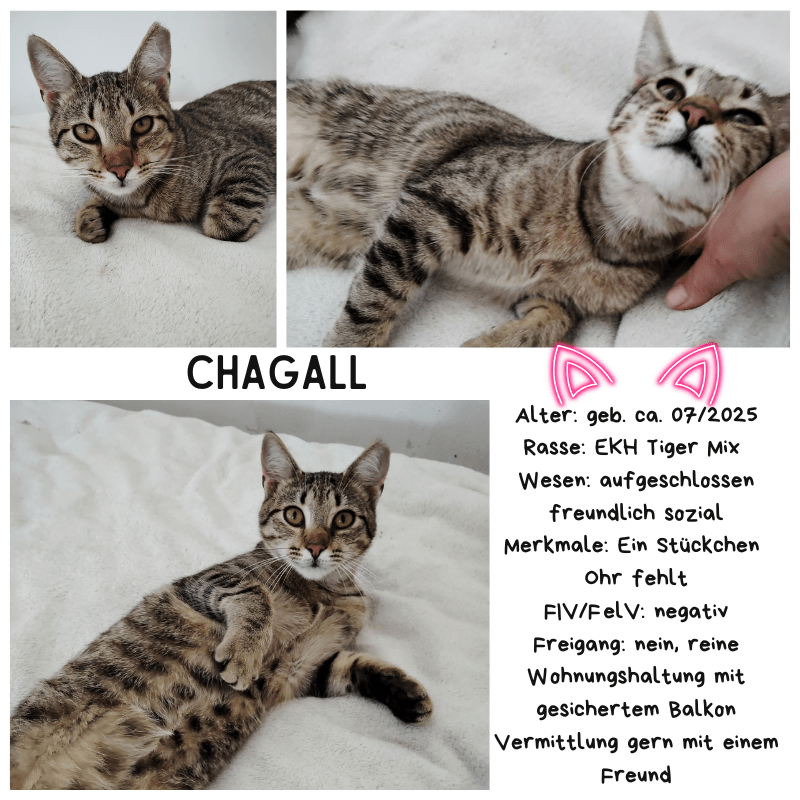 Ab Ende April ist er bereit, in sein neues Zuhause zu ziehen. Wenn Sie diesem charmanten Kater ein liebevolles Zuhause geben möchten, freuen wir uns auf Ihre Anfrage!