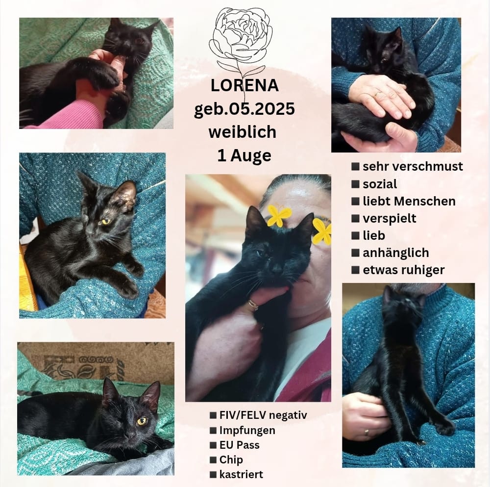 Gesucht wird ein liebevolles Zuhause in reiner Wohnungshaltung. Ein abgesicherter Balkon, Garten oder eine Terrasse wäre ein schöner Zusatz, ist aber keine Voraussetzung. Lorena ist ab Ende November 2025 ausreisebereit.
